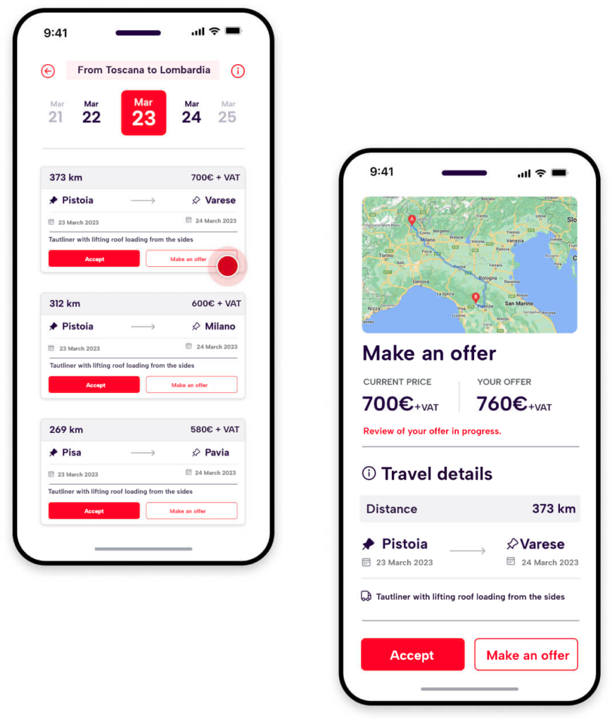 By increasing the number of companies within the network, it will be easier for hauliers to find a nearby loading point, reducing fuel consumption and costs, and as a result they will be able to transport at lower prices. By increasing the number of hauliers, the needs of companies on individual routes will be met more and more. The greater the volumes, the more data will be collected to optimise matching rates between pick-up and delivery locations. This, in turn, reduces costs for the companies that need to transport, while increasing utilisation and drivers' earnings. All to the benefit of the planet, which will see less and less CO2 produced by the empty kilometres caused by the lack of transparency typical of the industry.
